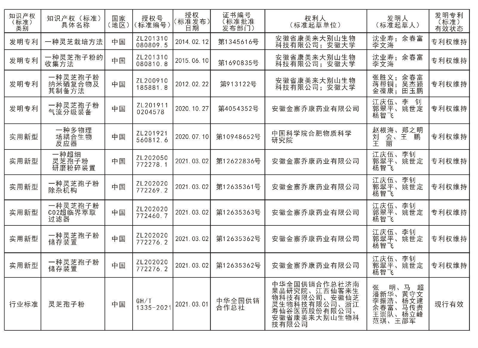 五、主要完成單位:安徽省康美來大別山生物科技有限公司、安徽大學、金寨縣力源食用菌種植專業合作社、安徽金寨喬康藥業有限公司、中國科學院合肥物質科學研究院