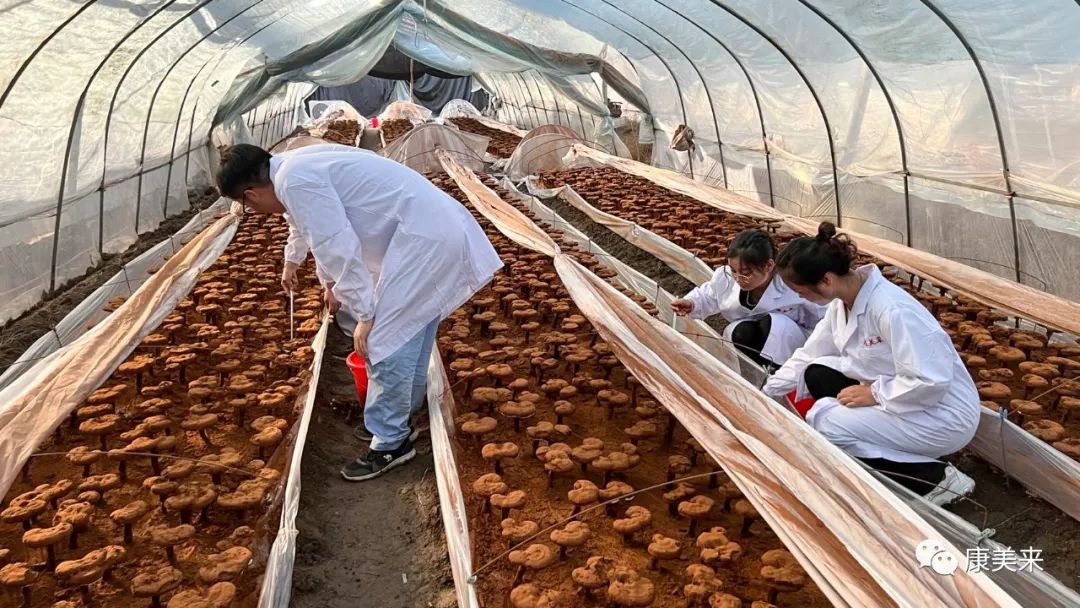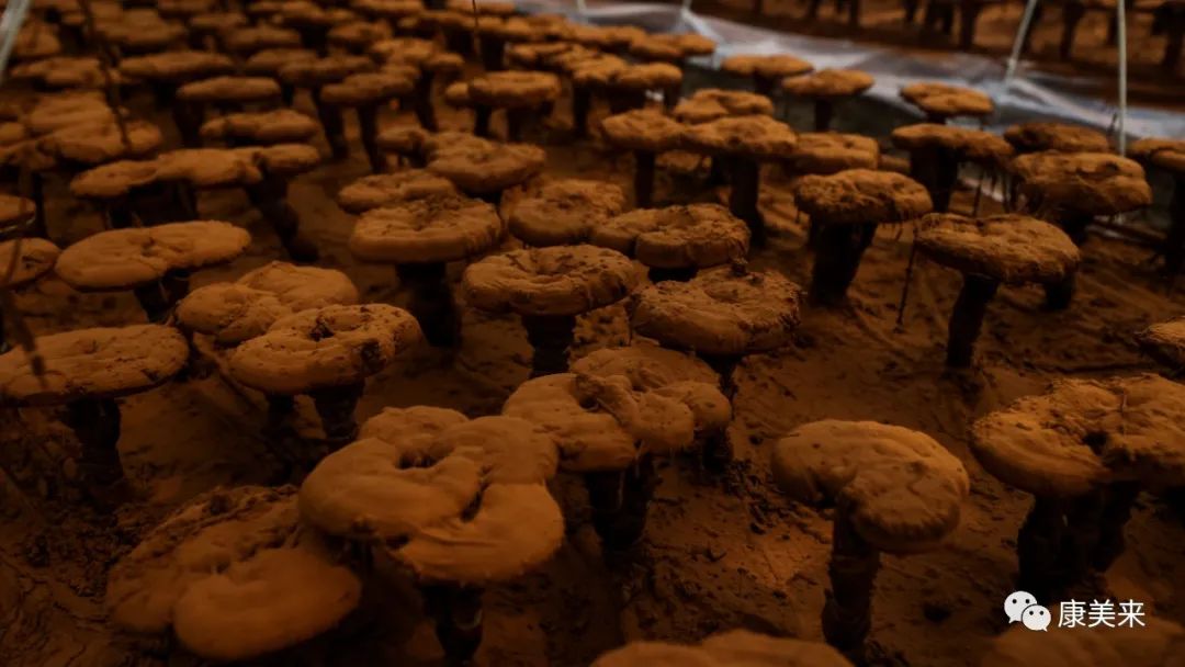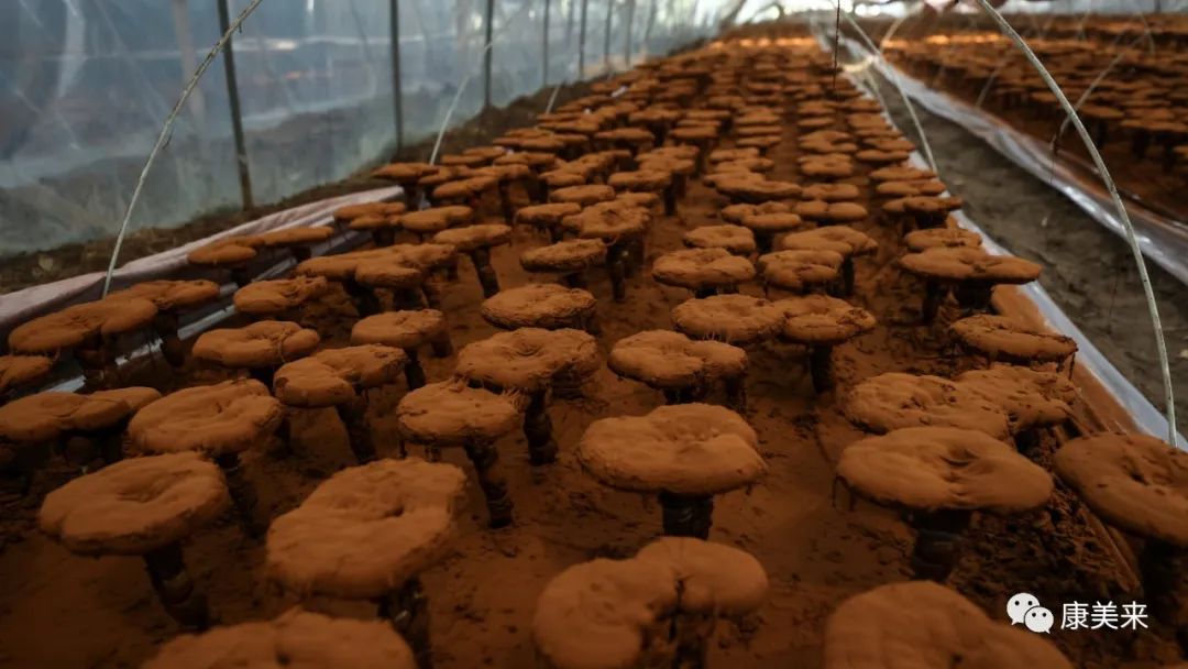 基地負責人黃總表示:這塊基地用于客戶參訪和旅游觀光,所以菌棒下地較晚。但整個生長情況正常,這里海拔高,溫度適宜藥用真菌生長。