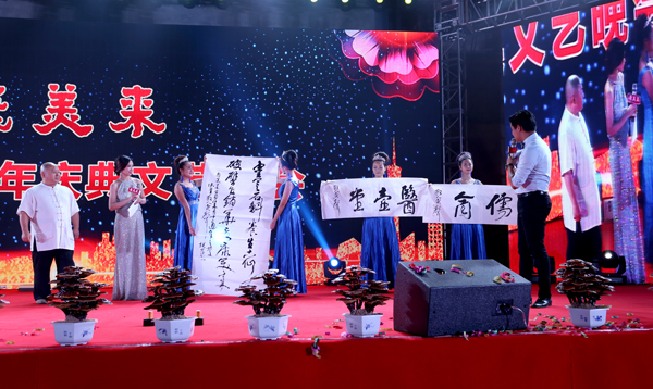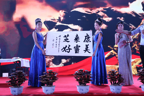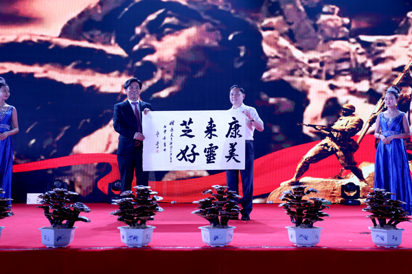 8月21日晚上,康美來12周年慶典文藝晚會在六安舉辦。著名表演藝術家、鄧小平特型演員盧奇親臨六安,登臺助陣,友情出演?!靶∑酵尽闭J為康美來的事業是一個造福人民群眾健康幸福的崇高事業,是功德無量的事業,是響應黨中央、國務院“精準扶貧”的事業,帶領老區人民脫貧致富。他贊賞并鼓勵康美來扎根大別山敢闖敢冒的精神,號召大家大膽創業,為中國夢而奮斗!作為書法家的盧奇還現場提筆潑墨,書寫“康美來靈芝好”六個大字,字如其人,展現出書法功底,并贈送余春富董事長,慶賀康美來12周歲生日和集團成立。