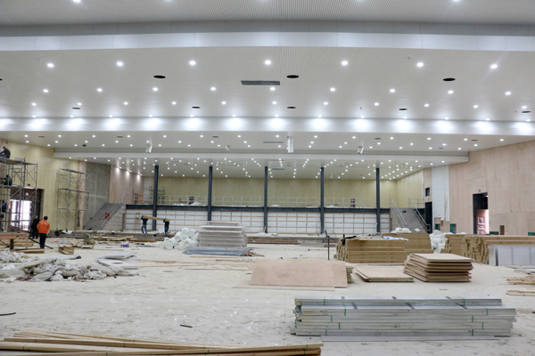 會(huì)議室、系統(tǒng)辦公樓、餐廳、公寓樓正在緊張裝修,客房樓已經(jīng)封頂。