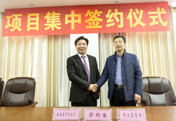 余春富董事長與六安市經濟開發區管委會副主任閆浩濱出席投資協議簽訂儀式。