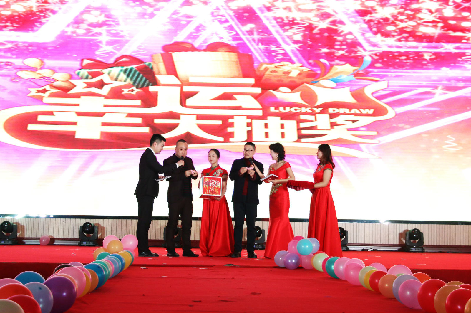 現(xiàn)場(chǎng)一輪一輪的抽獎(jiǎng)也讓晚會(huì)高潮不斷,驚喜不斷。60名幸運(yùn)獎(jiǎng),30名三等獎(jiǎng),10名二等獎(jiǎng),5名1等獎(jiǎng),1名特等獎(jiǎng),總計(jì)106名家人收獲了公司的幸運(yùn)獎(jiǎng)。