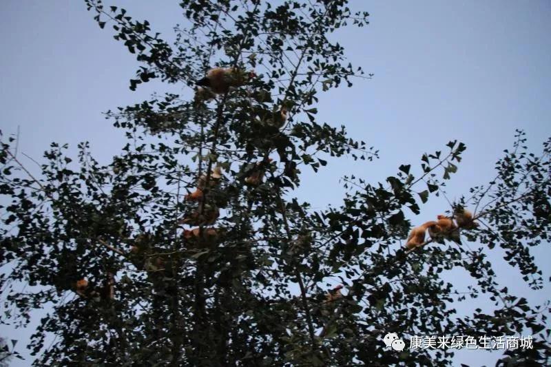 臨近傍晚,天色昏暗下來,土雞們開始紛紛飛上樹林,麻雀一般的跪在枝條上靜默無聲,他們開始休息了。