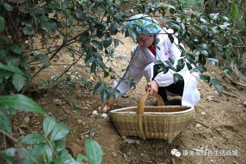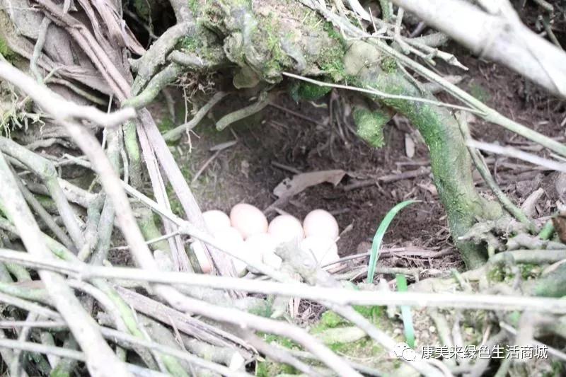 走進山林,山地上到處是一堆又一堆土雞蛋,八枚十枚堆在一起。幾只土雞伏在山地里不動聲色,原來是在靜靜的下蛋。