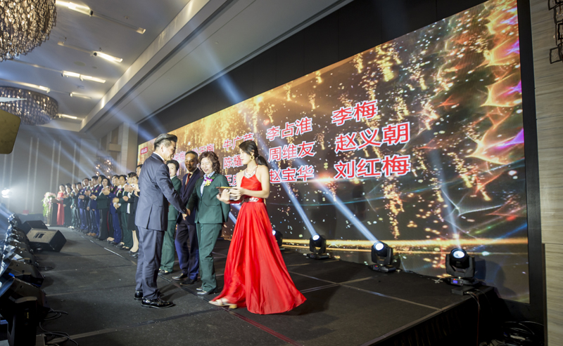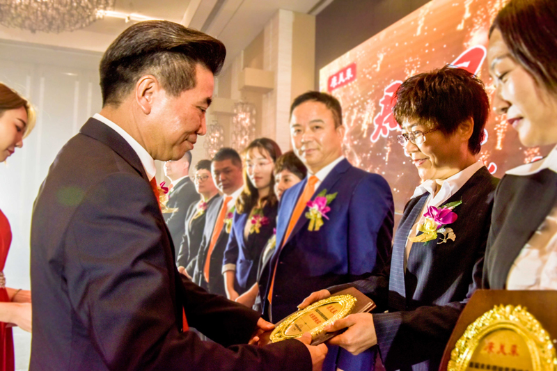 隨后未來領袖們登上榮耀的舞臺,余董為未來領袖們頒獎,授予“康美來集團2018未來領袖”獎牌。