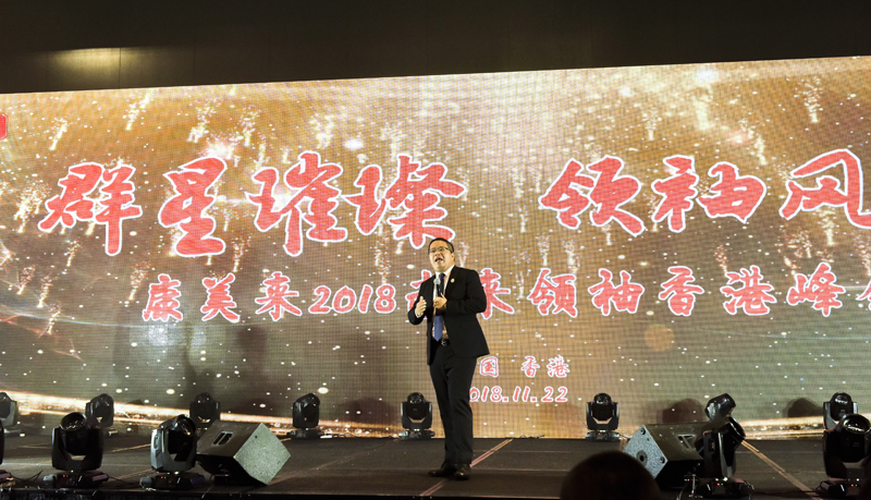 會議首先由康美來集團董事長余春富致辭。余董表示:康美來2018未來領袖高峰會議在香港召開,意味著公司高度重視市場前線的精英人才,關注人才的成長和團隊領袖的培養,同時我們要帶領伙伴拓展視野,放眼全球,面向未來。