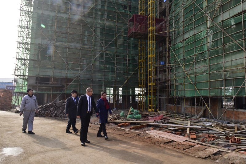 1月13日上午,康美來集團董事長余春富視察森湶谷藥業項目工程建設,項目一期已經完工90%。