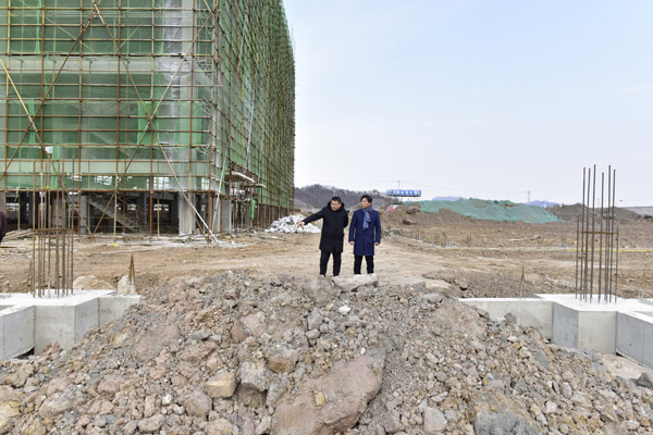 余董向施工方負(fù)責(zé)人了解工程建設(shè)情況。施工方負(fù)責(zé)人表示:五棟廠房基礎(chǔ)工程全部完成,整體工程項目樁基相對復(fù)雜,實際深度超過設(shè)計,最深達(dá)18米以上。