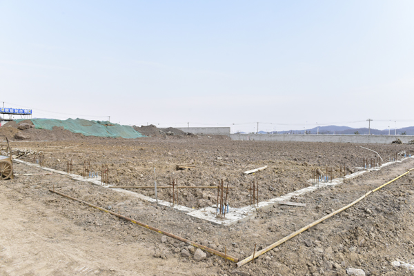 進(jìn)入項目工地大門后,首先進(jìn)入視線的是實驗樓,基礎(chǔ)已經(jīng)完成,公寓樓已完成一層。