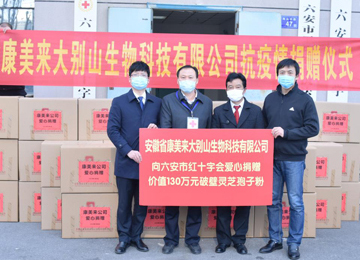 康美來向六安市紅十字會愛心捐贈破壁靈芝孢子粉130
