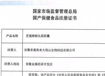 康美來(lái)芝蔻牌猴頭菇膠囊獲批國(guó)產(chǎn)保健食品批件