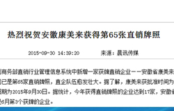 熱烈祝賀安徽康美來獲得第65張直銷牌照