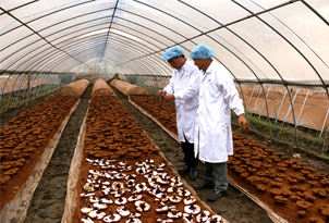 康美來大別山靈芝基地在桃?guī)X首日開采