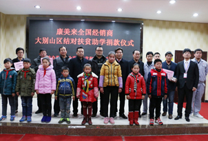 2016年1月6日康美來公司舉行全國經(jīng)銷商大別山區(qū)結(jié)對扶貧助學(xué)捐款儀式